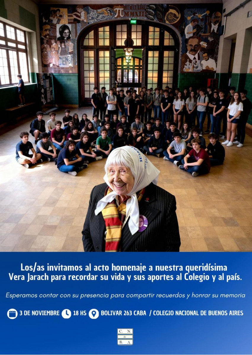 Invitamos a toda la comunidad educativa a participar de este acto en homenaje y recuerdo de nuestra querida Vera Jarach, emblema de la lucha por los derechos humanos, quien falleció el pasado 3 de octubre.