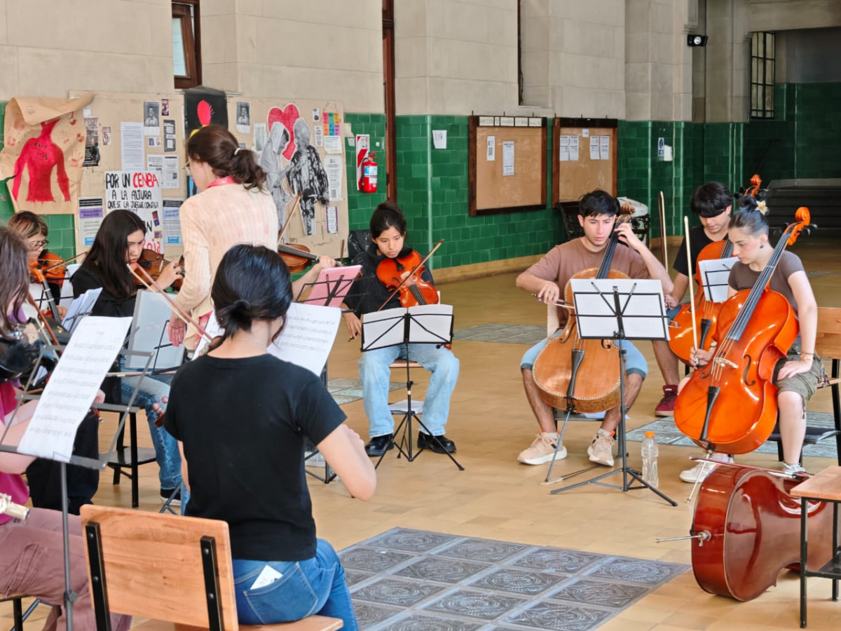 También hubo momentos de esparcimiento, donde los estudiantes tocaron algunas piezas musicales con instrumentos de cuerdas.