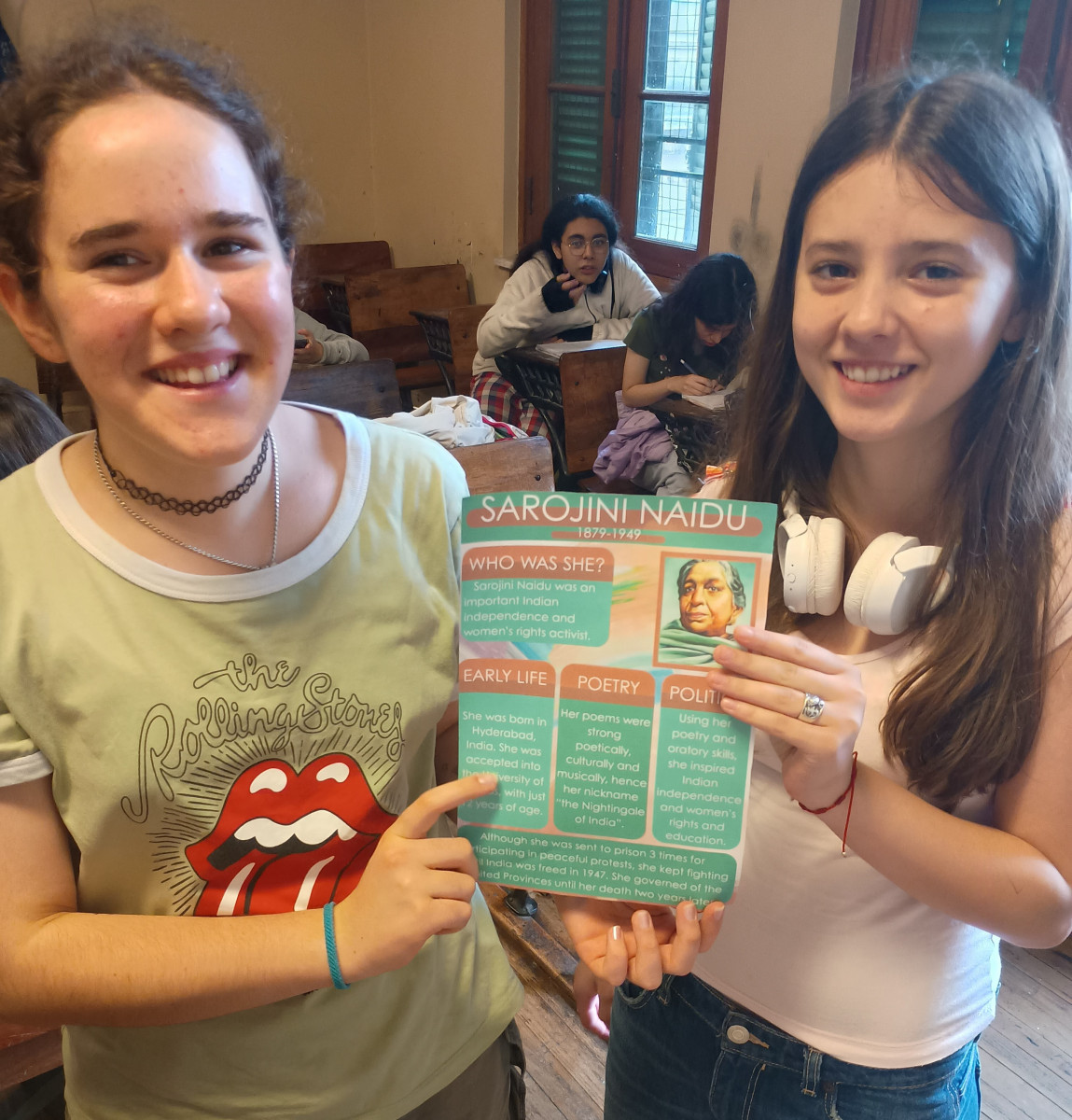 Por un lado, 1ro C 2 TT participó del proyecto colaborativo sobre "SHEROES" (Heroínas), que cambiaron la historia de Argentina, Egipto, India, Japón y la Unión Soviética. Las actividades incluyeron investigaciones sobre cada país, el diseño de posters y distintivos para lucir y videos, como así también la interacción directa con los alumnos de la escuela de la India, a cargo de la coordinación del proyecto.