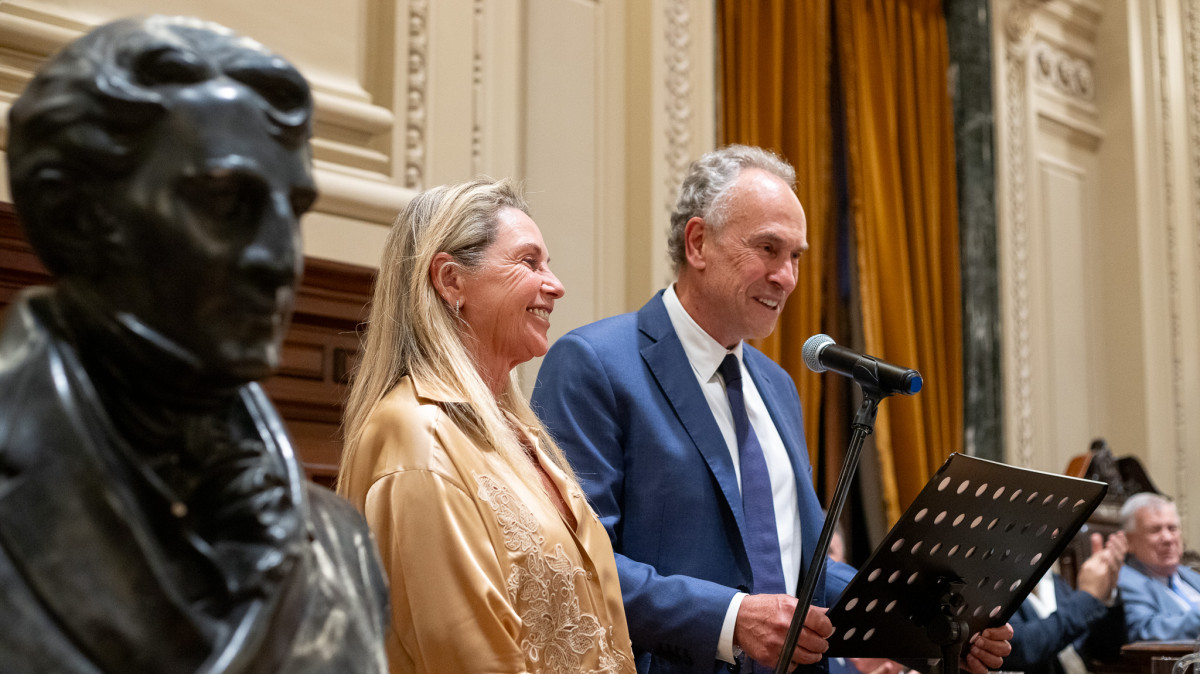No faltaron las palabras emotivas. En su discurso, Marcelo Mindlin recordó su paso por el Colegio durante los años de la dictadura militar, evocó el encuentro en estas aulas con quien sería su compañera de vida y reafirmó: